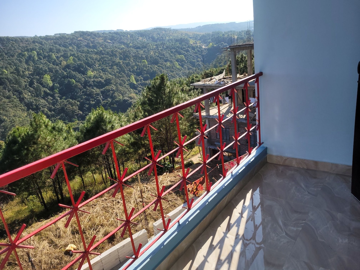 Întregul grup se va simți confortabil în acest spațiu spațios și unic. Salutăm familiile cu priveliștea noastră paranormică a orașului, a pădurii și a himalayelor de la proprietate. Pădure verde luxuriantă pentru drumeții și un restaurant pe acoperiș.