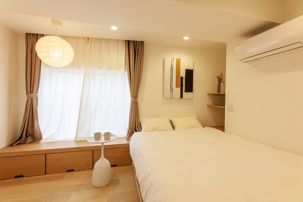 Este convenabil pentru întreaga familie să meargă oriunde în acest loc situat central. Camera este mobilată cu două paturi king-size, fiind ideală pentru familii și grupuri de prieteni. Distanța dintre paturi este confortabilă, iar amenajarea păstrează un spațiu privat.Potrivită pentru a găzdui până la 5 persoane. Bucătăria deschisă este dotată cu aragaz cu inducție, oale, tigăi și veselă, astfel încât să puteți găti cu ușurință mâncăruri tradiționale sau preparate japoneze simple. Tejgheaua de bar unește livingul și zona de luat masa, fiind perfectă pentru orice, de la o cafea de dimineață până la o masă de seară. Chiuveta și baia sunt proiectate separat, astfel încât, chiar dacă mai multe persoane stau împreună, fiecare își poate menține propriul ritm. Furnizarea de Bluetooth stereo, ascultarea muzicii și o baie fierbinte noaptea în Japonia este cel mai relaxant moment al călătoriei. Camera este dotată cu un proiector, care poate fi conectat cu ușurință la platforme digitale de streaming populare. Complet echipat cu mașină de spălat rufe, purificator de aer, fier de călcat și un dulap spațios, avem tot ce îți trebuie. Spațiul este exact cum trebuie, perfect pentru ca o persoană să lucreze în liniște la tejgheaua de bar sau pentru câteva zile petrecute cu prietenii sau familia. Ne-am distrat de minune și toată lumea s-a simțit confortabil.