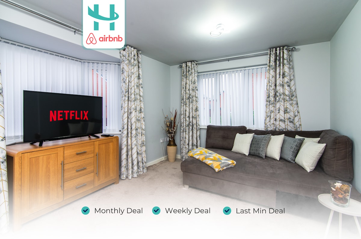 Apartament recent renovat, spațios și confortabil. Compus dintr-un lounge mare și confortabil, cu Sky TV și Broadband. Bucătărie modernă cu toate utilitățile și confortul de acasă. Baie luminoasă cu duș electric și spațiu din belșug. Dormitor dublu de dimensiuni bune cu garderobă triplă, un dormitor/birou mare de o persoană, cu ușă care duce spre zona privată a terasei. La mai puțin de 5 minute de mers pe jos de supermarketul local, 3 pub-uri , Costa, Spitalul Kings Mill și lac. 5 minute de mers cu mașina de Centrul Mansfield.