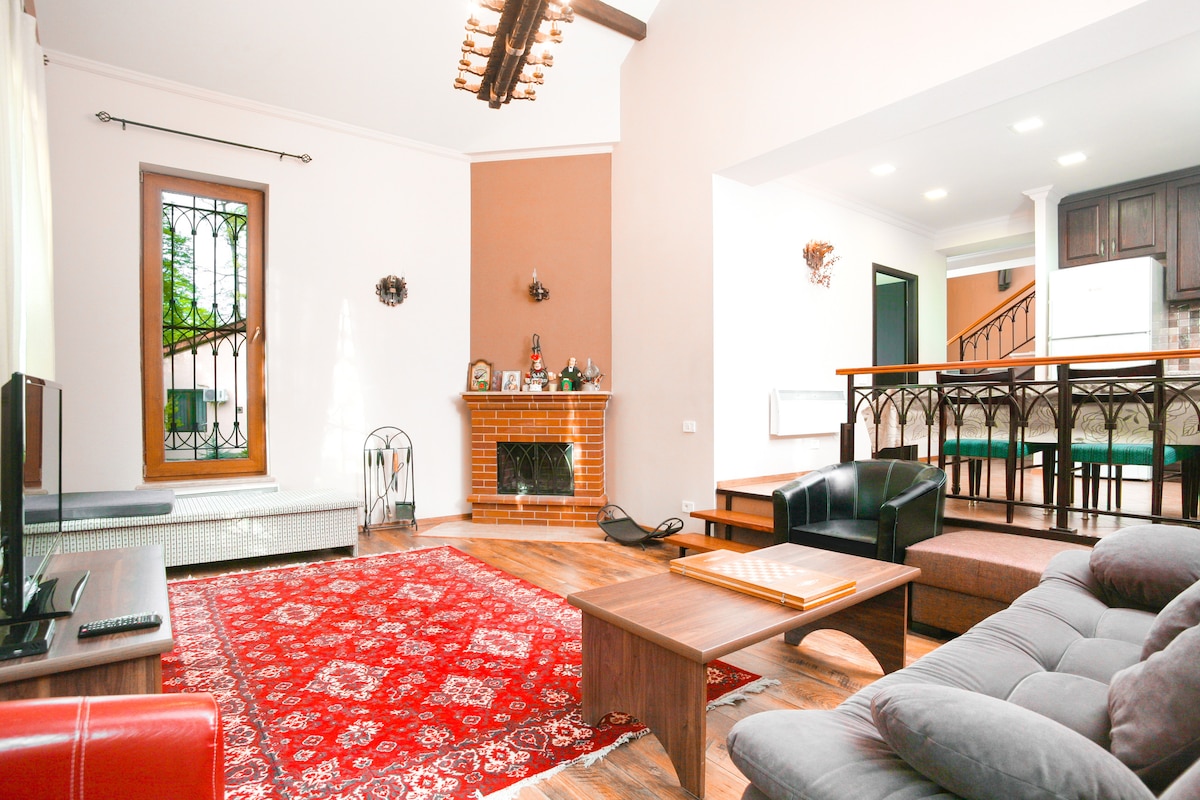 Bine ai venit la Casa noastră de vis din Parcul Național Dilijan, o escapadă liniștită înconjurată de natură uimitoare. Perfect dacă vrei să fii în natură și să te bucuri de sunetele păsărilor și de priveliștile uluitoare chiar de la ușa noastră. Locuința noastră are 3 dormitoare, 2 băi și un living spațios cu șemineu pentru seri confortabile. Terasa mare are până la 25 de locuri, ideală pentru adunări sau pentru a te bucura de aerul liber. Evadează în natură pentru un sejur de neuitat.