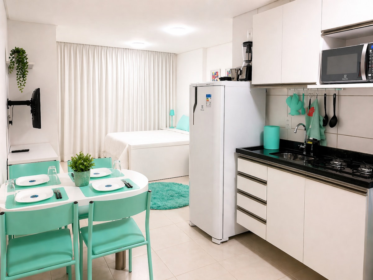Flat 8 min praia | Mercado ao lado | recepção 24h.