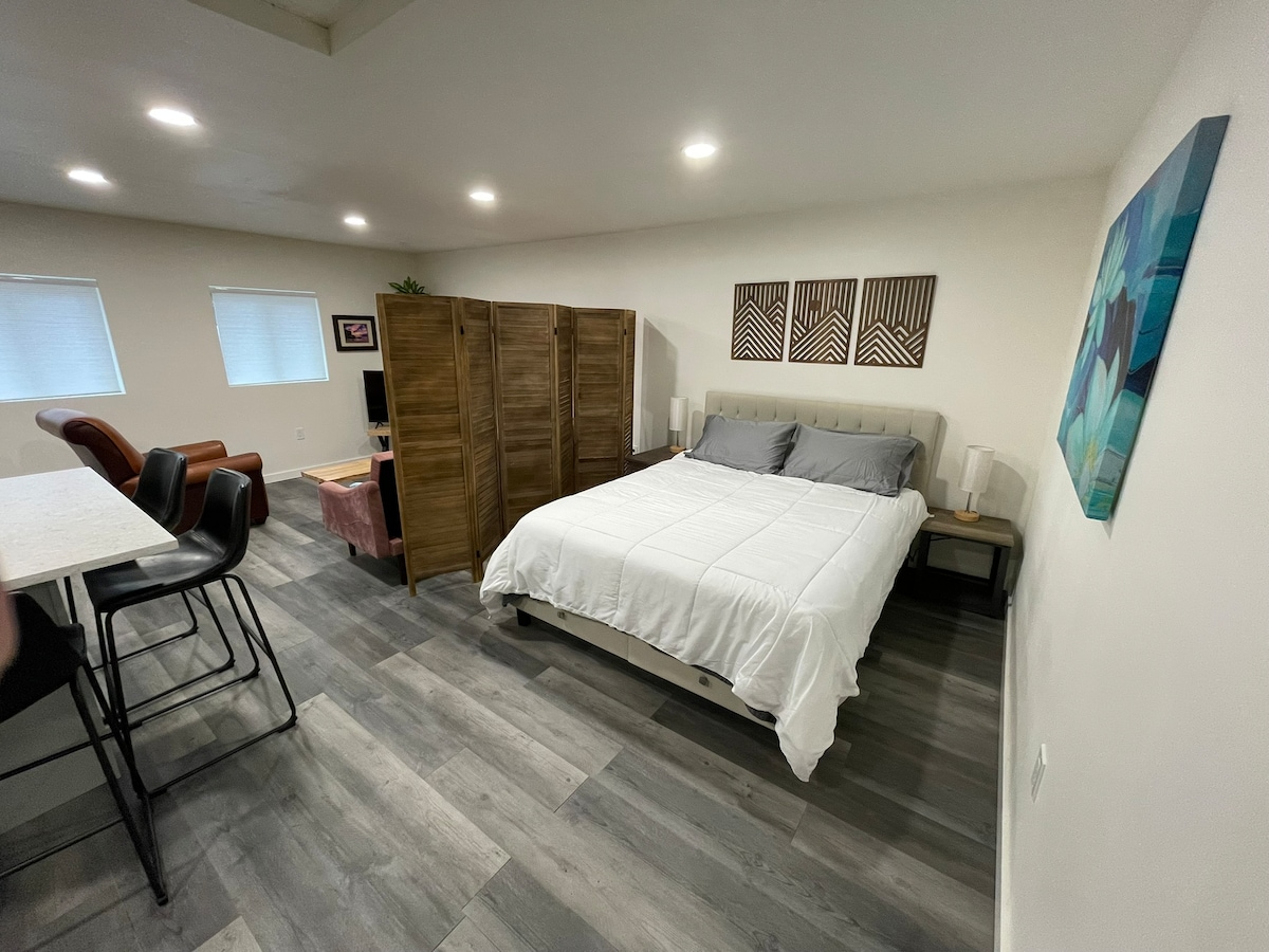 Simte-te ca acasă în studioul nostru aerisit și luminos, cu intrare privată și o chicinetă complet aprovizionată. Echo Lake Studio este totul pentru confort și comoditate. Bucură-te de Netflix și Disney+ pe un televizor ROKU de 55". Aproape de mâncăruri bune și de cumpărături, inclusiv Trader Joe 's și Costco. La doar 13 mile nord de centrul orașului Seattle, cu opțiuni bune de transport public la câțiva pași. Locuință excelentă pentru explorarea întregii regiuni Puget Sound