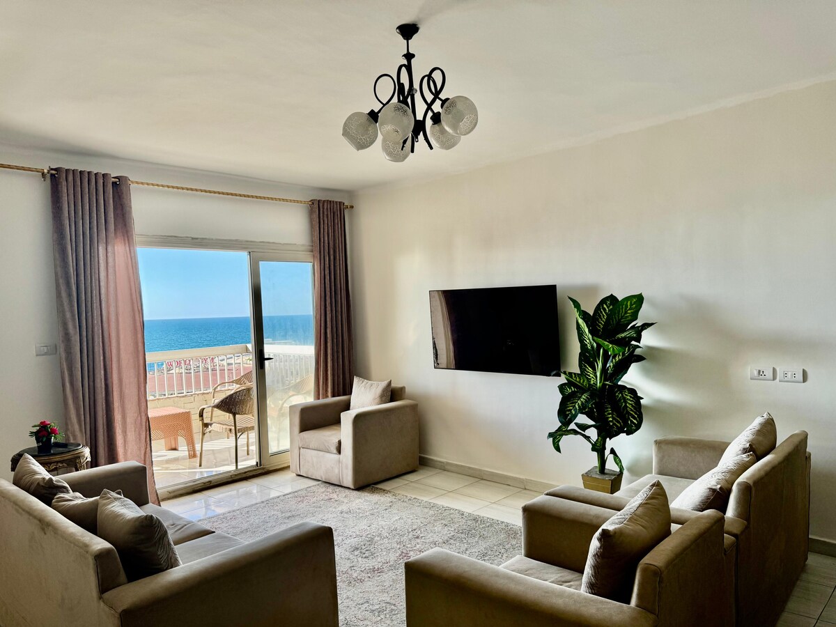 - For Families only 🏖️Cozy Beachfront Apartment in Sidi Gaber, Alexandria | Unforgettable Getaway! ✔️ Panoramic Sea Views: Wake up to waves & breathtaking vistas ! ✔️ AC/heating in cozy bedrooms , stylish living room, Equipped kitchen . ✔️ Endless Entertainment: 55" Smart TV with Netflix & Shahid VIP + high-speed Wi-Fi. ✔️ Security: 24/7 , elevators. 📍 Prime Location: Steps from the beach 🌊 – swim or stroll at sunset! top restaurants/cafes ☕ Near Alexandria’s landmarks & shopping.