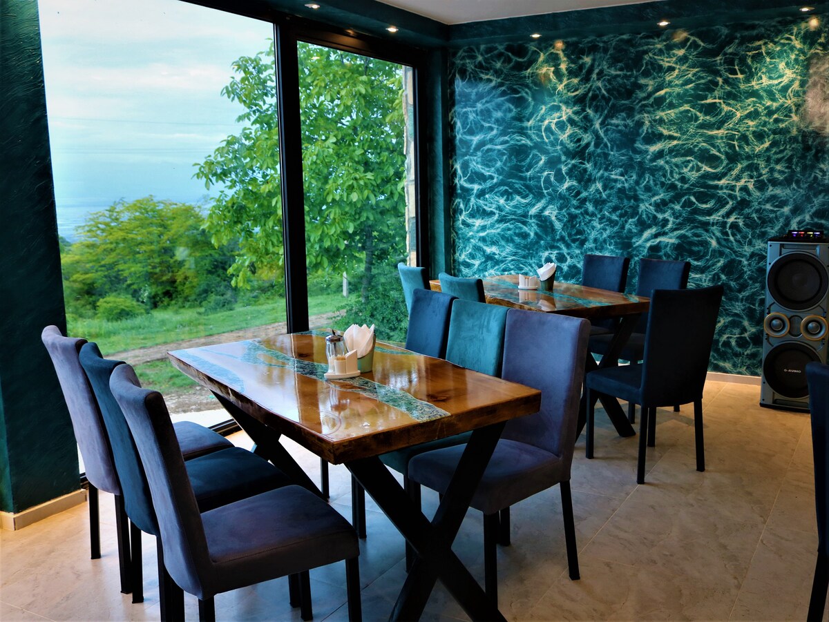 Descoperă un refugiu liniștit cu vedere panoramică de 180° la Valea Alazani și Munții Caucaz. Ideal pentru escapade, retrageri și șederi intime. Bucură-te de apusuri de soare pe terasa privată, shakshuka făcută de bucătarul nostru local, cursuri culinare, degustări de vinuri georgiene și sauna noastră în butoi, toate concepute pentru odihnă și reflecție. ⚠️ Important: din cauza terenului natural, a mai multor scări și a posibilității de întâlniri cu animale sălbatice, copiii sub 10 ani nu sunt permiși.
