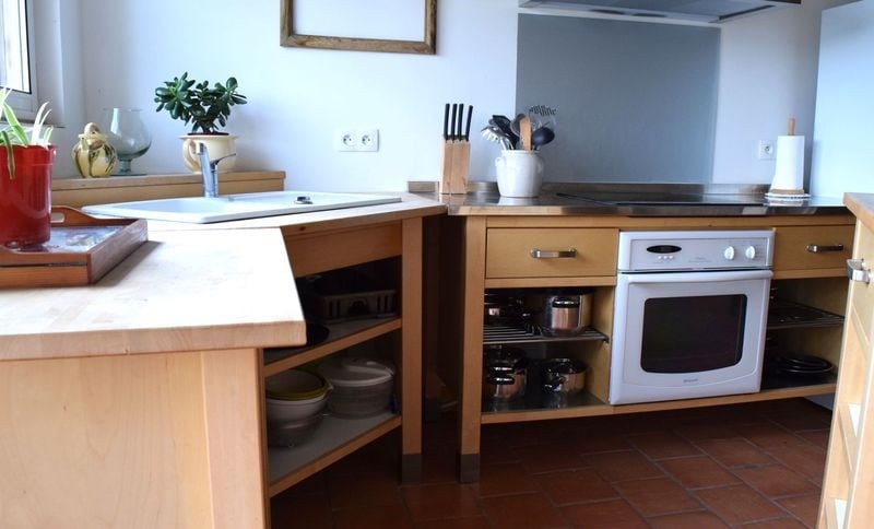 La parter intri într-o ecluză. O scară te duce în bucătărie cu o zonă de relaxare (cu canapea extensibilă) sufragerie și acces la piscină orientată spre sud! La al doilea nivel vei găsi o cameră cu aer condiționat și baie separată. Din dormitor, o loggie are vedere la piscină. Pe terasă vă puteți bucura de un moment de relaxare cu plajă, o masă și un grătar.