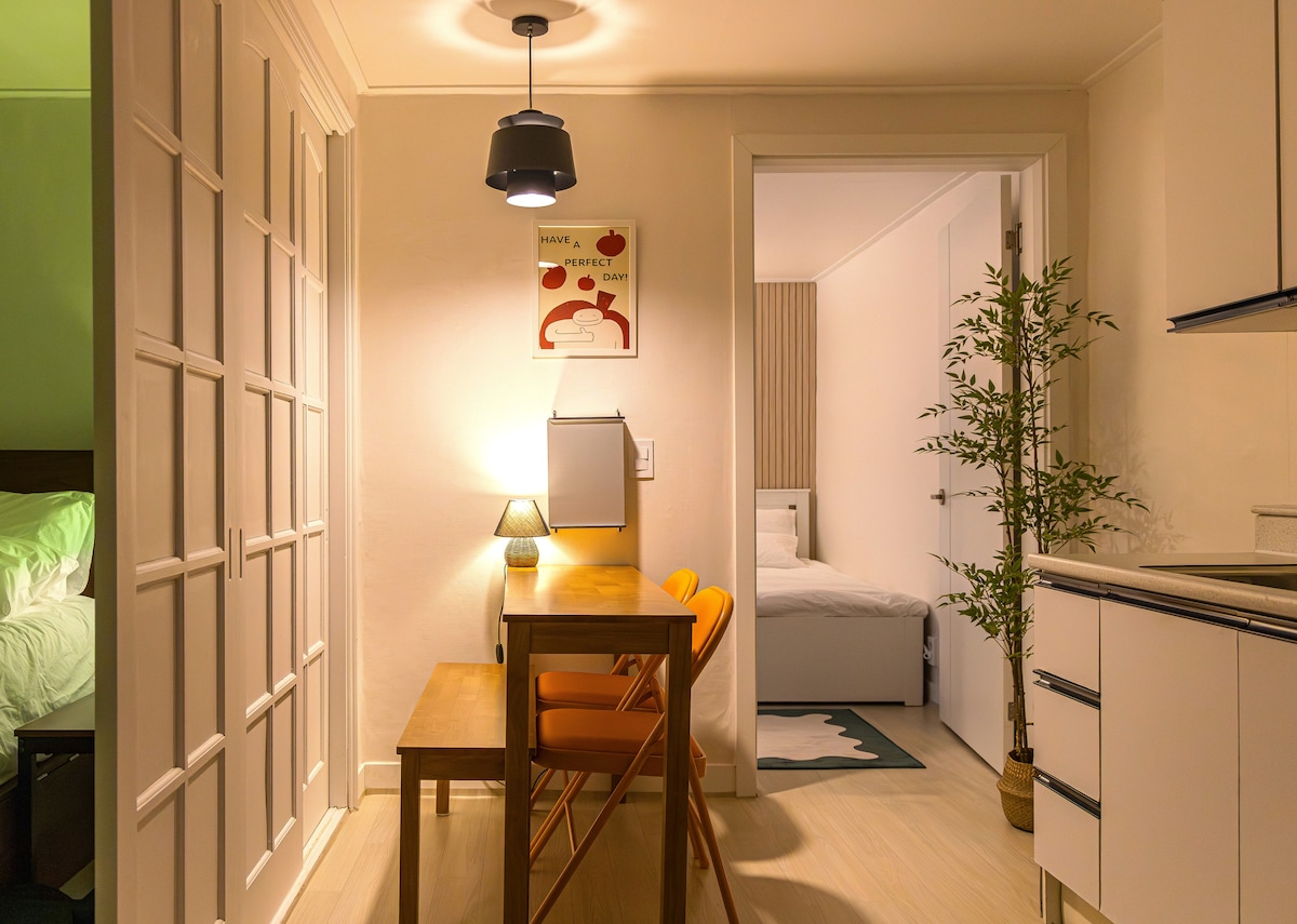 합정역8분|가족·친구 4인 감성숙소 /호텔급 3퀸베드|홍대·망원·경복궁·명동