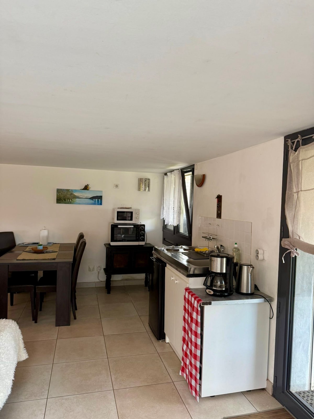 Apartament de 42m2 cu terasă la parter a casei noastre cu vedere panoramică la Annecy și munți Piscină cu apă sărată de 12 m x 5 m deschisă de la 1 mai - 15 octombrie (se împarte cu o altă locuință de închiriat prin Airbnb și cu gazdele). Prosoape de piscină la cerere Baie cu duș, chiuvetă,toaletă Bucătărie complet utilată Așternuturi 160 x 200 cm Televizor, Wi-Fi Parcare privată Cartier liniștit la 5 minute de mers pe jos de brutărie, farmacie și magazin universal Linia de autobuz nr. 1 către Annecy în 15 minute