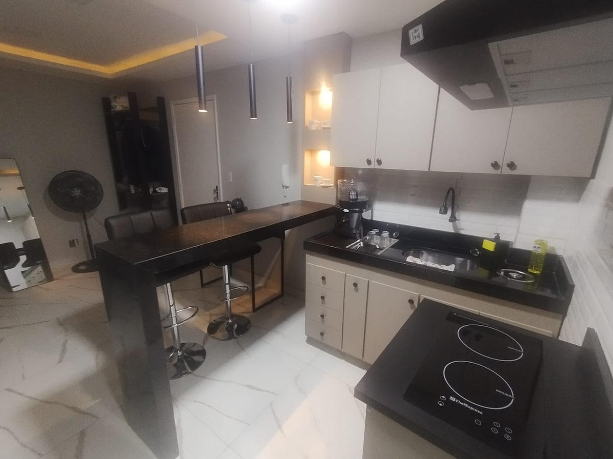 Apartament studio în centru, locație privilegiată și renovată recent. Stai lângă renumita brutărie Superpão, spațiul multifuncțional Arp și clubul de țară Nova Friburgo. Locație strategică pentru restaurante, săli de sport, agrement, artă, târguri alimentare, fabrici de bere, cafenele etc., poți face totul pe jos. Garsonieră dotată cu pat dublu king-size, canapea extensibilă, bucătărie cu frigider duplex, filtru de cafea, Smart TV Full HD de 50", internet Wi-Fi Clădire cu lift