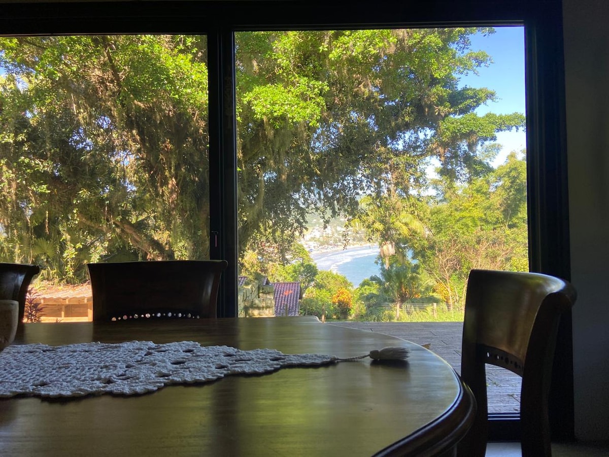 Studio romantic pentru cuplu cu pat matrimonial, cadă cu hidromasaj, duș cu gaz, bucătărie completă (aragaz cu inducție 2 arzătoare, frigider duplex, cuptor și ustensile), aer condiționat, TV inteligent de 43", balcon mare și șemineu, cu o vedere incredibilă la pădure și ocean pe plaja Silveira din Garopaba. Toate deschiderile au un ecran, oferind un mediu bine ventilat și fără insecte. Toate acestea pe un teren de 2.000 m2, unde se află încă 3 studiouri și o casă.