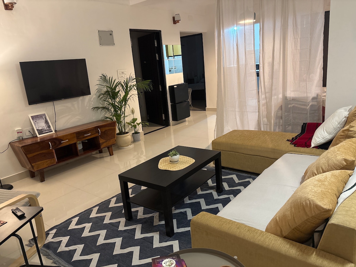Bine ai venit în apartamentul nostru confortabil și atent cu 3 camere, perfect pentru familii, grupuri sau lucrători la distanță! Fiecare dormitor are un pat matrimonial confortabil, ventilator de tavan, dulap cu dulap și propria sa atmosferă unică Camera 1: cameră de divertisment cu TV Camera 2: singura cameră cu spațiu de lucru AC și cărți de povești Camera 3: spațiu de recreere pentru relaxare sau întindere Bucură-te de o bucătărie funcțională, Wi-Fi de mare viteză, o zonă comună cu toalete indiene și occidentale, baie separată cu gheizer și parcare gratuită!