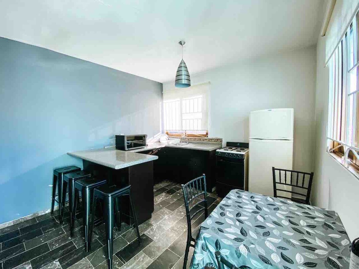 Doar 2 persoane cu pat dublu, o chicinetă dotată cu frigider, o baie completă și o oră de sosire flexibilă. Are aer condiționat, TV inteligent c/cablu, Wi-Fi, NETFLIX gratuit, modul de garderobă, linie de rufe pliabilă, suport pentru bagaje, fier de călcat și uscător de păr și masă pe terasă. În apropiere se află Playa, Centro Histórico, restaurante, magazine convenționale și universale, farmacie deschisă non-stop, spălătorie, biserici etc. Oaspeții cu mobilitate redusă nu sunt acceptați.
