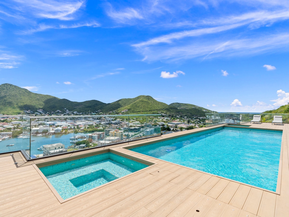 Unicul Aman_Sky este o oază de calm, lux și eleganță, construită pe dealul cu vedere la sublimul și strălucitorul Ocean Atlantic și Saint Barth. Aceasta este o proprietate modernă nou-nouță formată din două dormitoare matrimoniale cu două băi, living cu bucătărie complet utilată, terasă exterioară și zonă de spălătorie. Toate cele două dormitoare, livingul are vedere neobstrucționată la ocean. O piscină infinită uluitoare și o terasă la soare cu vedere la ocean, formează punctul focal al Aman