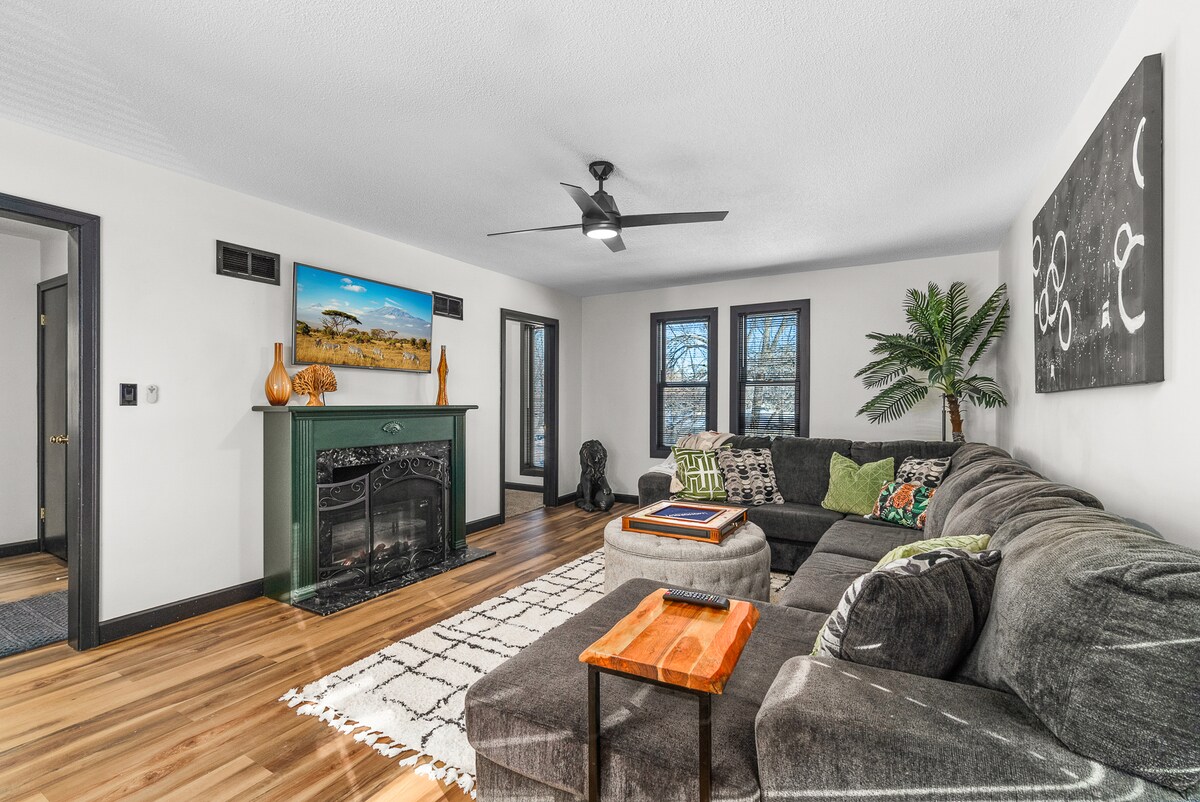 Bine ai venit la refugiul tău liniștit din Southside! Această fermă de 138 mp oferă confort și comoditate cu 2 dormitoare matrimoniale, 2 băi și o suită de afaceri cu pat dublu și Wi-Fi. Bucură-te de un living confortabil cu TV de 65”, curte împrejmuită, terasă și garaj cu 2 locuri. Câinii sunt bineveniți (max. 2; vezi regulile de la „Alte detalii de reținut”). Capacitate maximă de 5 persoane — al 5-lea oaspete + 50 USD/noapte. Ideal pentru familii, profesioniști și călători care caută relaxare liniștită în apropierea atracțiilor din Sioux Falls.