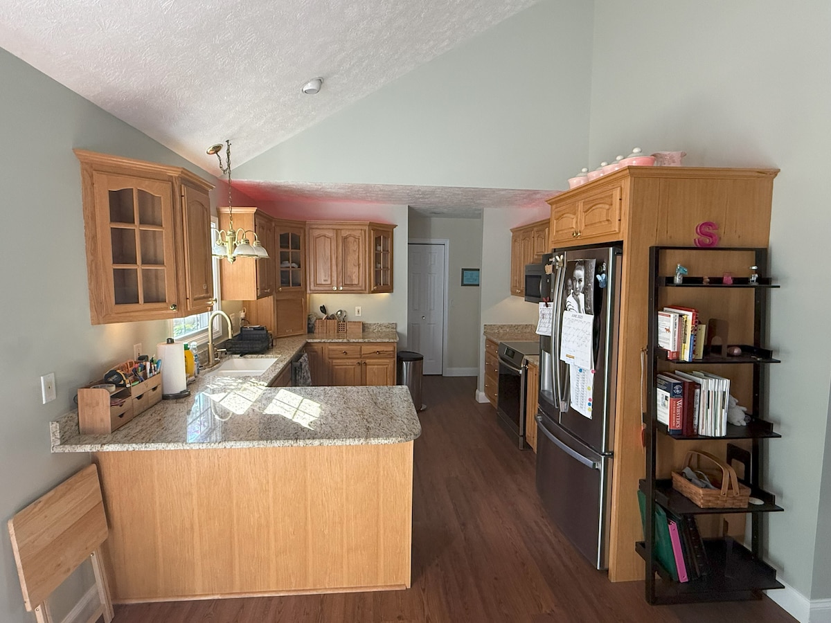 Situat în Charleston,WV lângă Spitalul Memorial CAMC. La 10 minute de Aeroportul Yeagar. Acest subsol complet mobilat a fost recent remodelat, ceea ce oferă un spațiu liniștit și curat pentru relaxare sau muncă. Pat matrimonial și canapea extensibilă. Sunt disponibile saltele cu aer. Două băi complete. Cadă cu hidromasaj nou-nou Cadă cu hidromasaj. Te poți relaxa și te poți relaxa pe punte în timp ce te uiți la iaz și la cascadă. Noaptea poți face o plimbare pe îndelete în jurul iazului sub lumină. Wi-Fi gratuit.