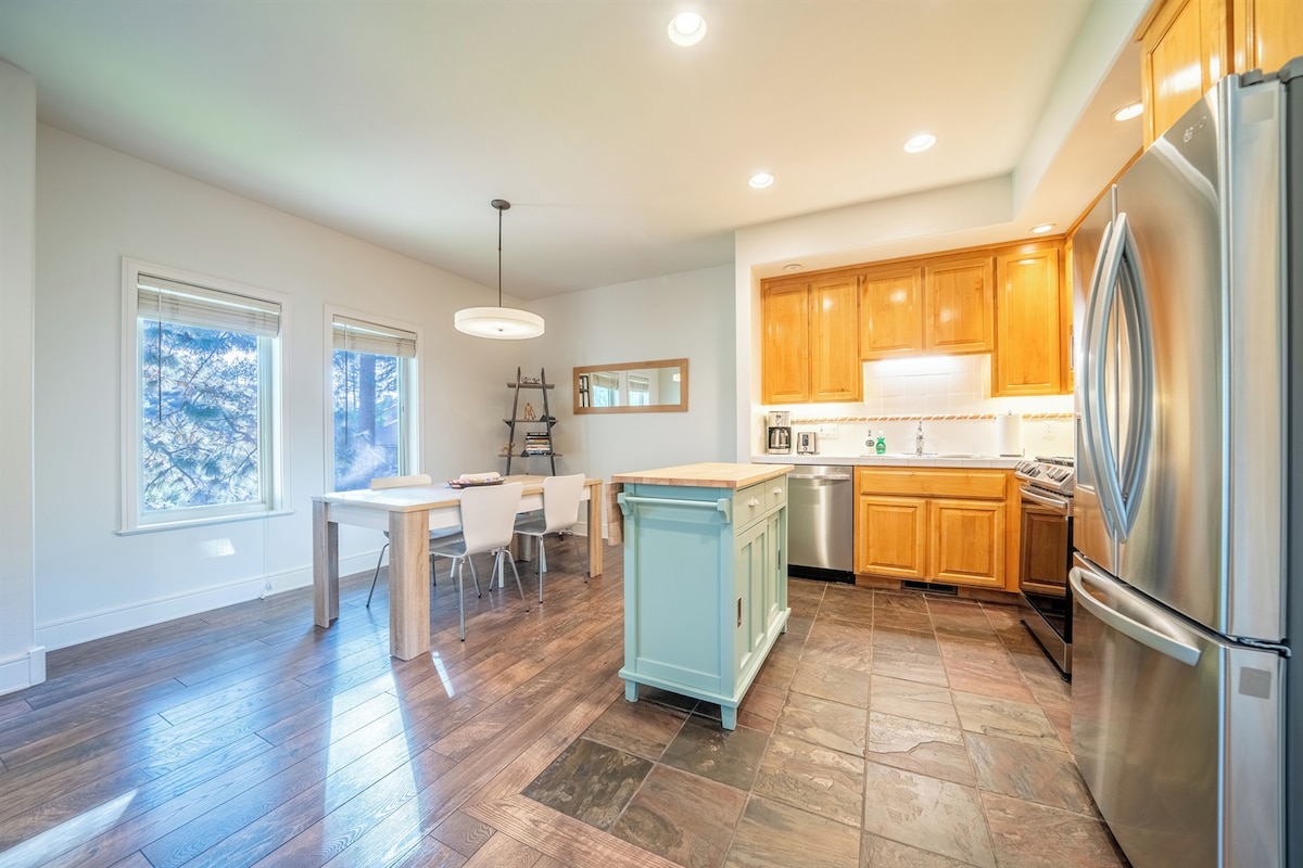 Apartament de lux cu Wi-Fi rapid - un loc perfect pentru escapada ta de vară. Priveliști uimitoare ale Munților Cascade. 21 de mile până la Muntele Bachelor pentru drumeții, ciclism montan sau distracție pe râu. Ușor de mers pe jos până la Deschutes, Amfiteatru, Old Mill + centrul orașului. Parcare securizată în garaj pentru mașina și echipamentul tău. Relaxează-te pe punte la soare după o zi afară sau lucrează de la distanță. Privește soarele cum apune deasupra munților. E pur și simplu raiul pe pământ.