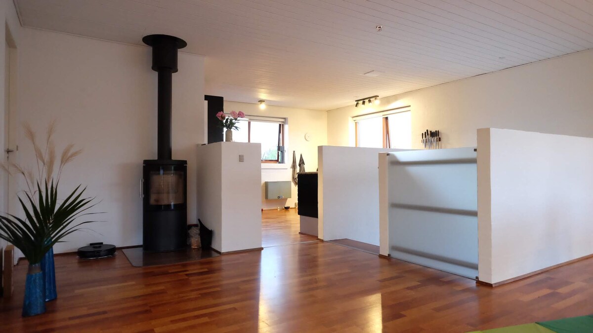 Relaxează-te în împrejurimi private, verzi, cu 500 de metri până la autobuz, 2 km până la mare, 9 km până la Aarhus C, 30 km până la Djurs Sommerland. Bucătărie/living într-o cameră, cu canapea și pat tip cutie cu arcuri de 140 cm. Un dormitor cu un pat de 160 cm. Bucătărie privată cu frigider (+ congelator mic), mini-cuptor, cuptor cu microunde, mini mașină de spălat vase, precum și câmp de gătit cu spațiu pentru 2 vase. Baie/toaletă privată. Parcare privată gratuită. Anexa este detașată cu o terasă mică, orientată spre sud, rezervată numai pentru oaspete. Gazda locuiește într-o clădire separată.