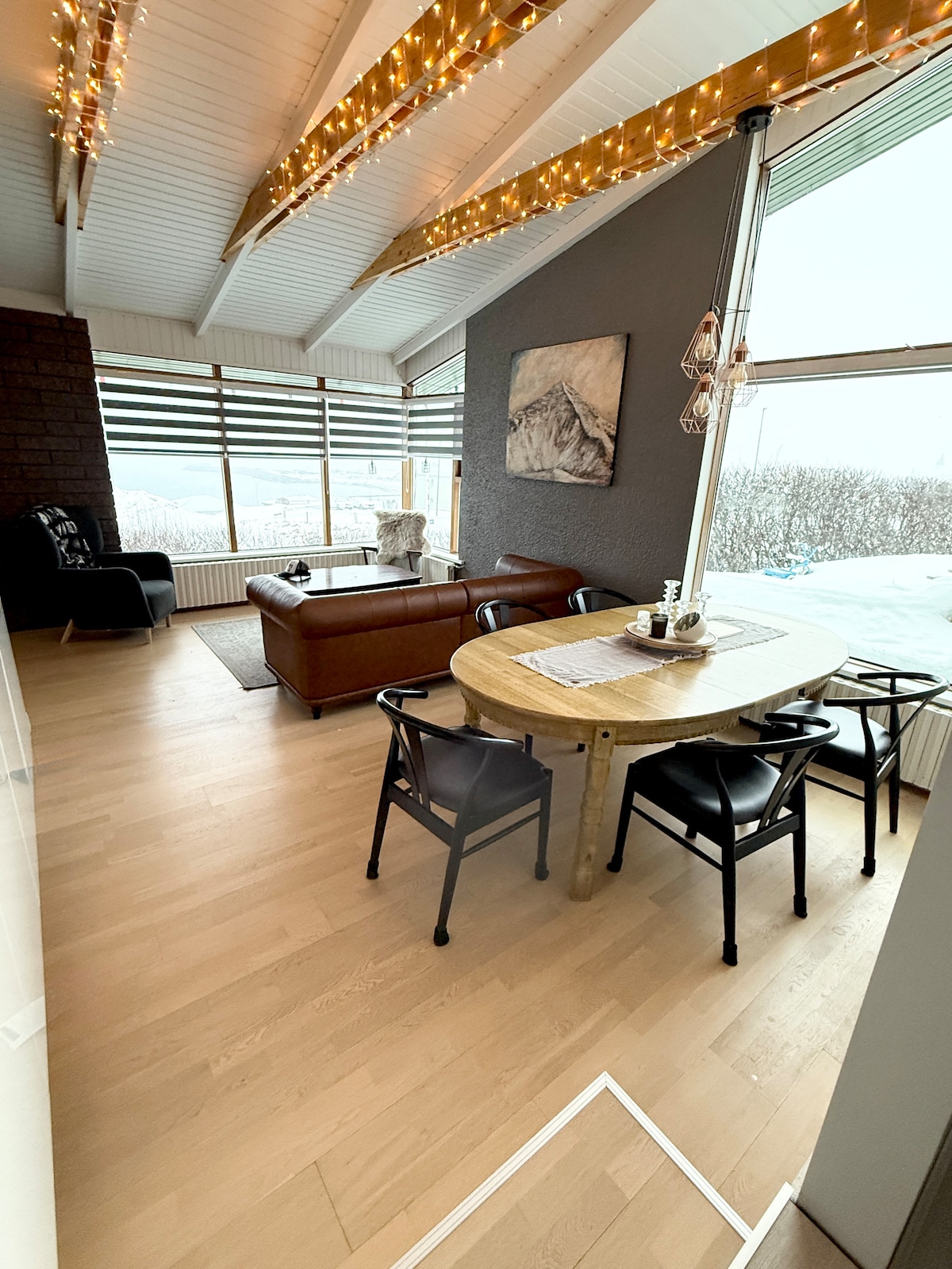 Casa se află într-o fermă mică din nordul Islandei. Oaspeții au multă intimitate în casă, așa cum este ea singură. S-ar putea să vezi caii noștri și chiar oile noastre aproape de casă. Câinele și pisica noastră sunt prietenoși și ți-ar putea face o vizită. Poți face plimbări scurte printre cai, oi și păsări într-un peisaj variat. În timpul iernii, există o experiență unică de a sta în cada cu hidromasaj și de a urmări luminile nordului. Casa este un loc bun pentru biroul de acasă datorită Wi-Fi de mare viteză și a facilităților.