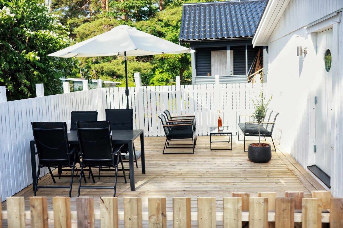 Cabană confortabilă nou construită 42 m2 + mansardă din 2020 cu plaja chiar în fața ferestrei. Locație relaxantă și liniștită în Svarte, cu vedere la mare. Dormitor cu pat dublu și dormitor cu două paturi de o persoană. Living cu canapea și TV Bucătărie cu două plite, cuptor cu microunde, frigider și compartiment frigorific Baie cu gresie cu duș și toaletă. Terasă mobilată cu vedere la mare. Bucătărie în aer liber cu grătar cu gaz Duș exterior în fața ușii. Sunt disponibile TV, Wi-Fi și parcare.