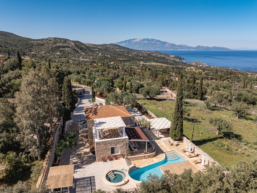 Vilă privată pe vârful dealului, cu piscină și vedere la mare