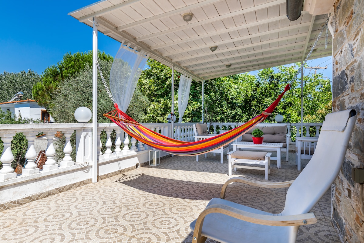 O casă la țară complet echipată, situată în frumosul sat Glossa, cu vedere uimitoare la Marea Egee și la apusul de soare uimitor! Potrivit pentru o vacanță ușoară! Mobilierul și decorațiunile sunt realizate din materiale naturale, creând o atmosferă fără griji. Poziția casei la capătul satului, într-o zonă liniștită, îți face șederea relaxată. În același timp, te afli la 10 minute de mers pe jos de piață, magazine mici,brutărie,restaurante,cafenele și stație de autobuz.