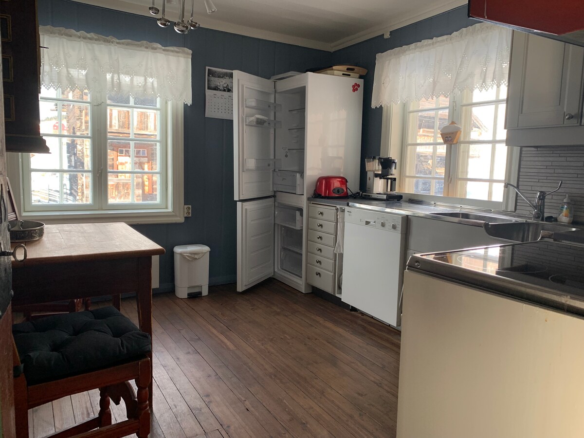 Cabană pitorească, modernizată, cu 3 dormitoare (două regine), WiFi, duș, spălătorie, grătar, încărcător electric și o cadă cu hidromasaj cu lemne, care este proaspăt umplută pentru fiecare ședere. Relaxează-te pe terasa mare cu vedere panoramică la munții Jotunheimen sau condu doar 5 minute până în centrul orașului Fagernes pentru magazine și mese. Curățenie profesională între oaspeți. În Valdres vei găsi nenumărate drumeții, schi, pescuit și experiențe culturale. Notă: cabana are o ușoară înclinare de la decenii de vreme de munte.