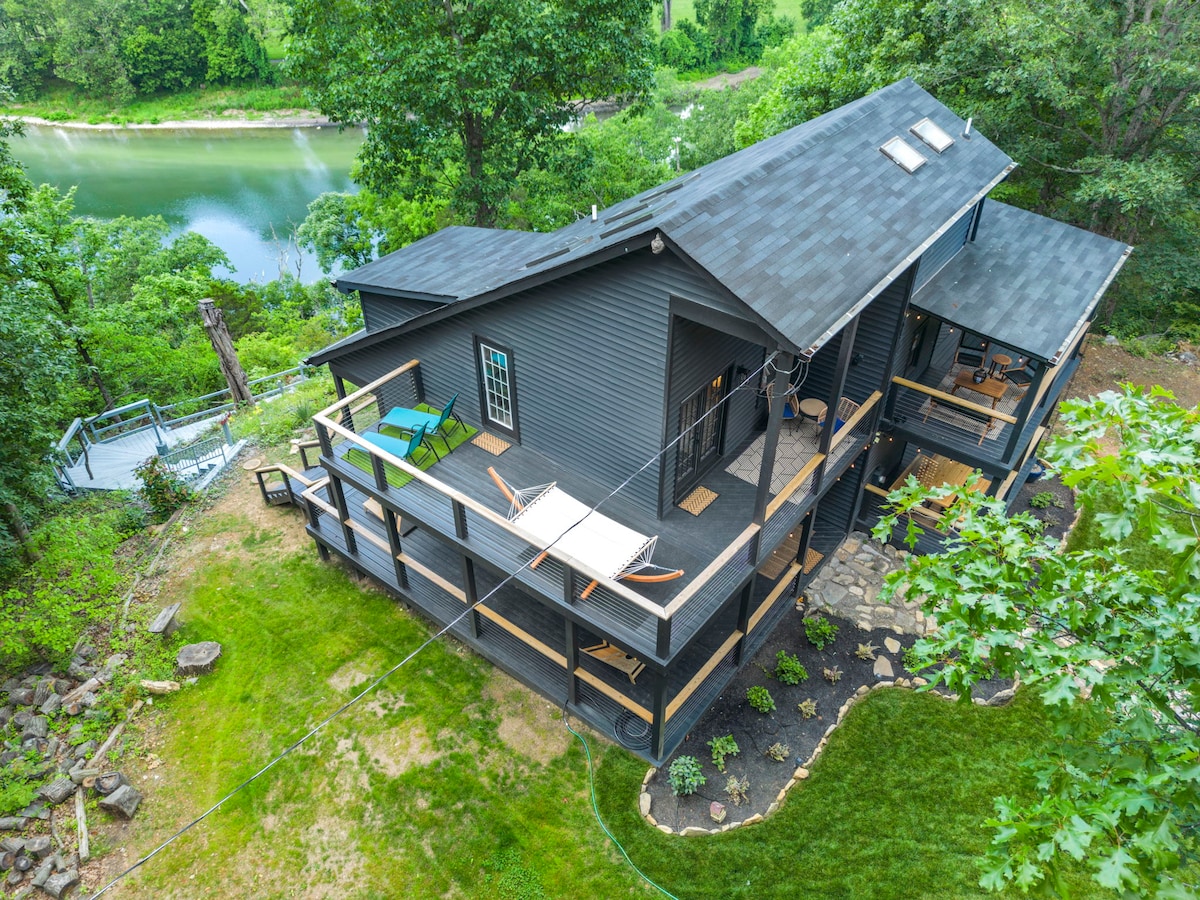 Descoperă casa noastră Black Modern Charm, un refugiu privat pe 35 de acri, cu vedere panoramică la munte și la râul Shenandoah. Relaxează-te în cada cu hidromasaj cu vedere la râul, la peștii sau caiacul de dedesubt și relaxează-te lângă focul de tabără în acest cadru liniștit din pădure. 🌲♨️ Conceput pentru confort și evadare, acest refugiu modern este perfect pentru a te deconecta, a te reconecta și a te bucura de natură în toată splendoarea ei. Rezervă acum pentru o adevărată escapadă pe vârful muntelui. ✨