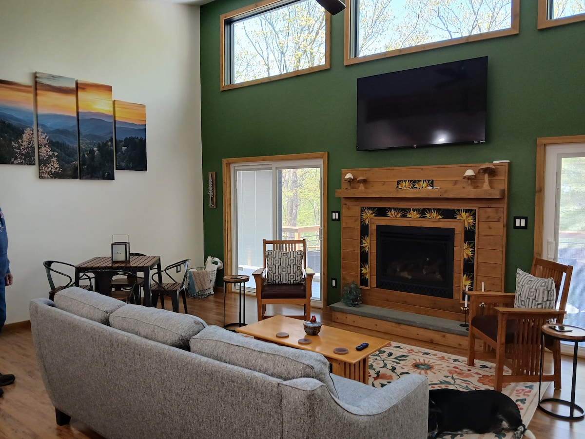 Bine ai venit la refugiul tău confortabil din Poconos! Această locuință elegantă are un aspect deschis, tavane catedrale și o sală de jocuri. Dormi liniștit cu un pat matrimonial, paturi matrimoniale și paturi duble, plus o canapea extensibilă pentru spațiu suplimentar. Bucură-te de bucătăria noastră modernă, de dotările potrivite pentru familii și de apropierea de atracții de top, cum ar fi Kalahari și Muntele Camelback (15-20 min). Relaxează-te lângă vatra de foc, relaxează-te în natură sau explorează traseele de drumeții din apropiere. Rezervă acum pentru o escapadă memorabilă!
