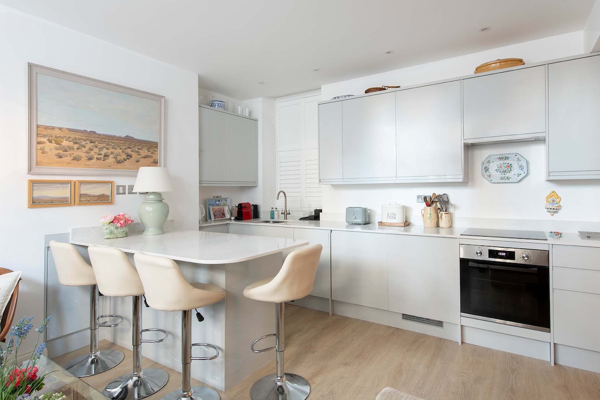 O locație aproape de buticuri și restaurante și un spațiu de locuit luminos și fermecător face din acest apartament locul perfect pentru pauze în vestul Londrei. Tonuri răcoroase cuplate cu lumina soarelui venind dinspre ferestrele mari, binecuvântează ambianța cu liniștea la care te-ai aștepta de la o locuință din Chelsea. Ieși la balcon și savurează briza peste ceașca de dimineață. În multe după-amiezi, vei fi bucuros să te întinzi pe canapea sau să te relaxezi în pat cu o carte bună.