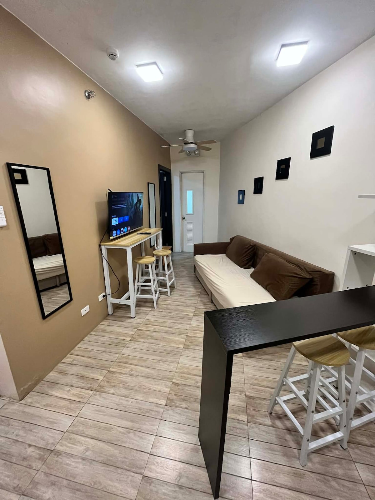 This charming space comes fully equipped with: Wi Fi Smart TV Hot/Cold Shower Electric Fan (2) & Exhaust Fan Electric Kettle Basic Kitchen Utensils (Plate, Fork & Spoon) Complimentary Water 🍳OPTIONAL Stove & Cooking Utensils (Additional P200/day) 💐Fresh Linens/Blankets/Towels 🅿️ Message host first about parking availability