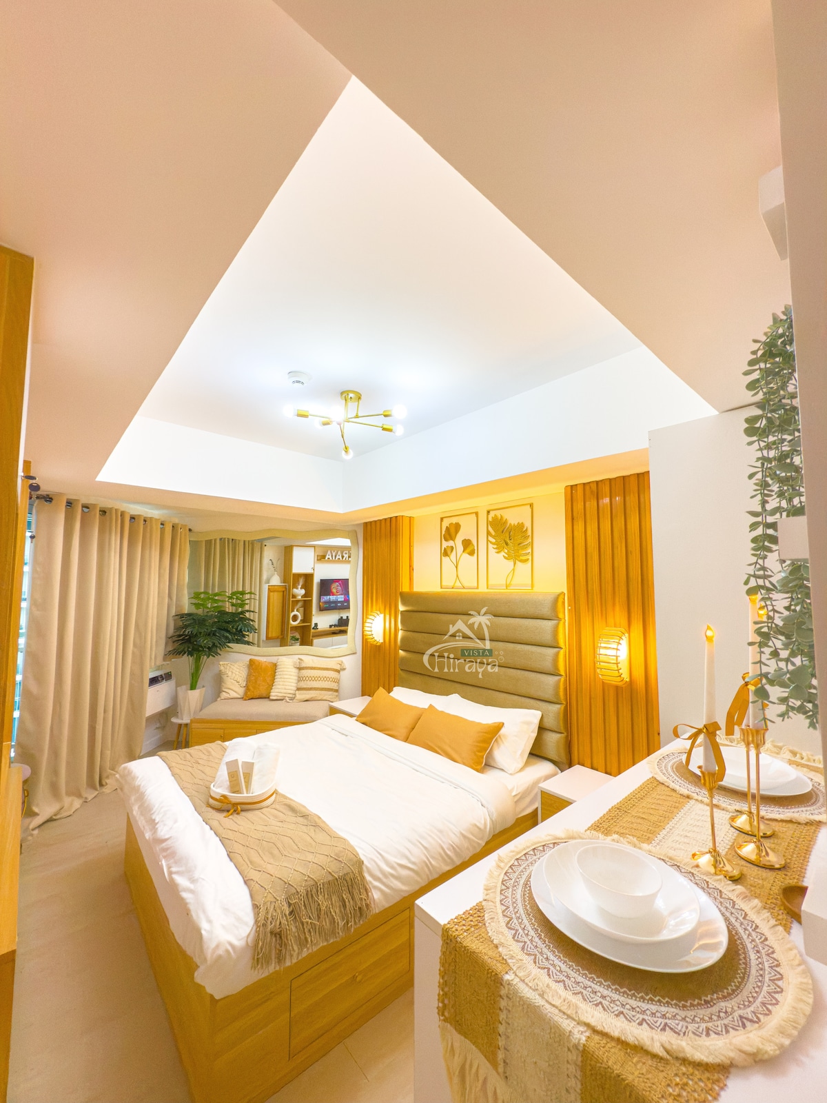 Evadează într-un refugiu romantic modern la Azure North Pampanga. Această unitate elegantă are un balcon spațios, cu vedere uimitoare la piscină și oraș, perfect pentru nopțile tale de vin sau cafeaua de dimineață. Bucură-te de interioare confortabile, iluminare ambientală și o atmosferă liniștită, ideală pentru cupluri, familii sau persoane care se relaxează singure. Situat într-o clădire premium, cu dotări în stil stațiune. Vacanța ta de vis începe aici.