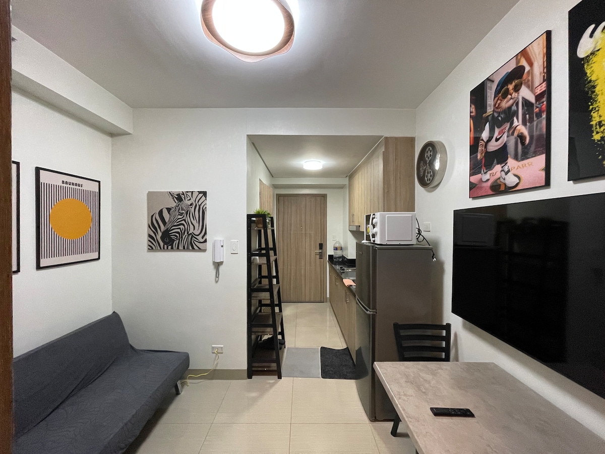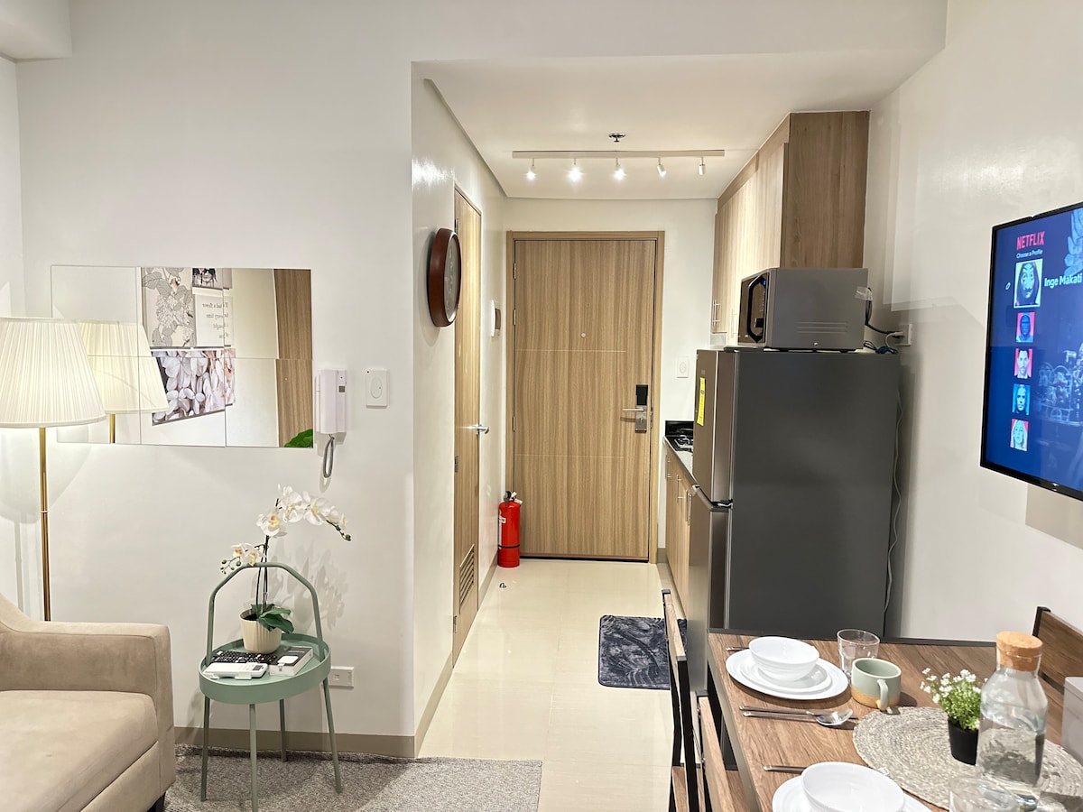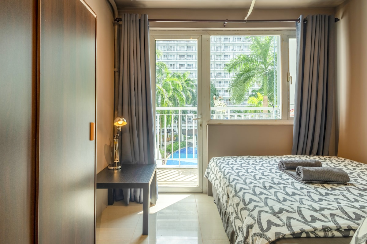 Bine ai venit în unitatea noastră minimalistă cu 1 dormitor, cu o vedere uimitoare la piscină. Relaxează-te în zona de living aerisită cu televizorul nostru inteligent, gătește-ți mesele în bucătăria noastră complet echipată pentru a lua masa sau pur și simplu pentru a te bucura de momente cu vedere la balcon. Dar, cel mai important, dormi liniștit în paturile noastre confortabile. Situat la câțiva pași de Ikea, Centrul de Convenții SMX, MOA Arena și cele care înconjoară zona Mall of Asia. Răsfață-te cu restaurantele, cafenelele și magazinele convenabile din apropiere, chiar lângă apartament.
