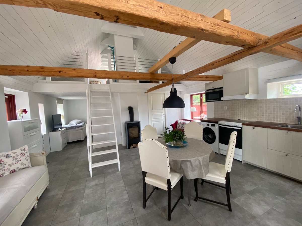 Bucură-te de priveliștea liniștită a câmpurilor și a cailor. Fă o plimbare până la ocean și bucură-te de împrejurimile frumoase și liniștite din Östra Torp. Casa mică are o bucătărie complet utilată, loc de luat masa într-o soluție în spațiu deschis. Spații de dormit cu un pat dublu la mansardă și două paturi (unul cât mai extensibil pat dublu) la parter. Un spațiu privat în aer liber pentru grătar și apus de soare.