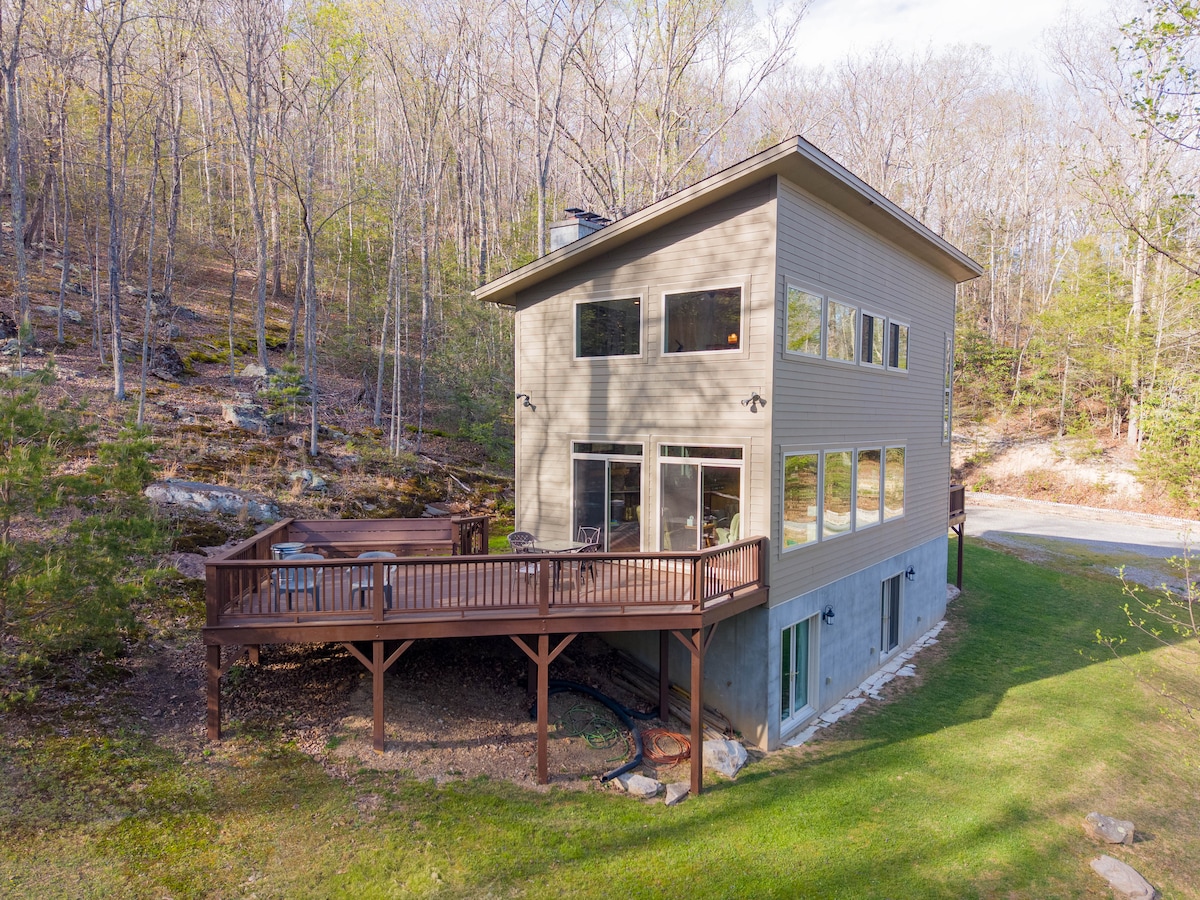 Now high-speed internet! On 6 wooded acres in a private mountain river cove outside Damascus, VA , our cozy, renovated 3-story A-frame cottage property fronts the cliff-flanked, trout-stocked South Fork Holston River. The cottage features 3 spacious bedrooms, each on its own level; a fully equipped kitchen; great room; dining room; laundry room; and a 2nd-floor loft accessing the 16'-wide balcony. A 20' x 12' deck offers space for outdoor relaxing and dining and opens to the yard with fire pit.