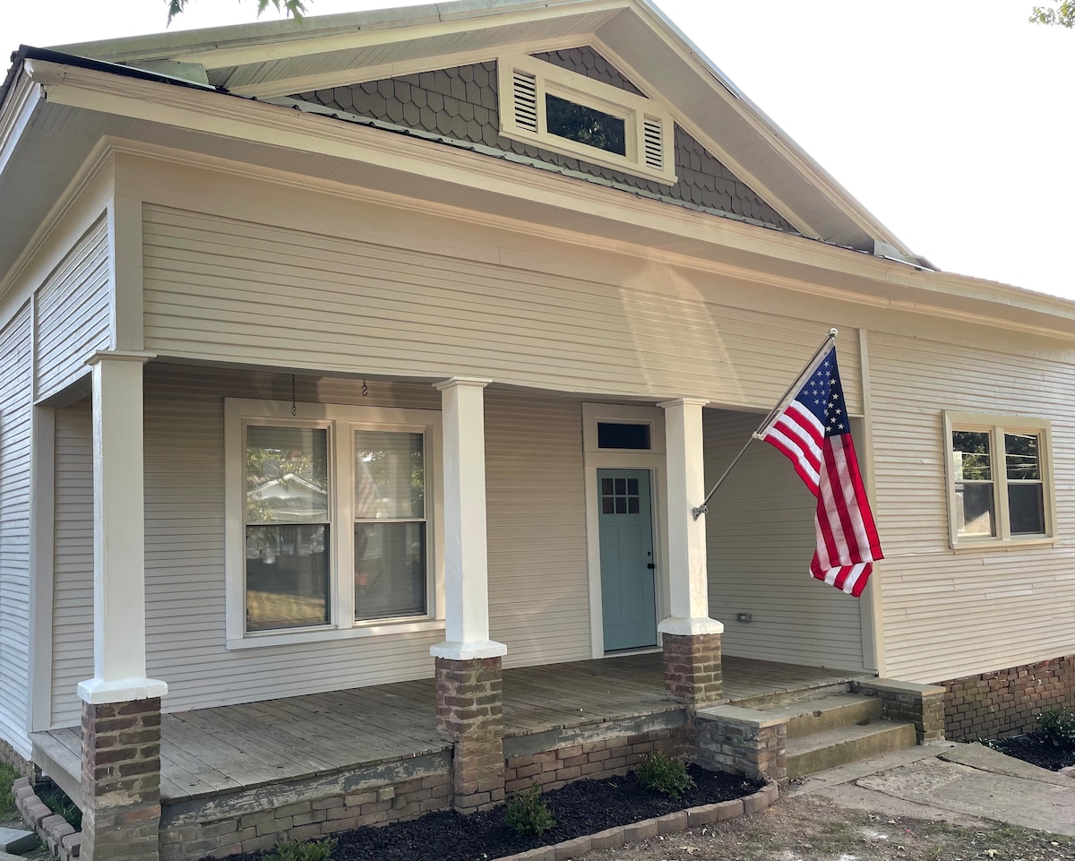 This little white farmhouse is full of country charm. Built in the 1920s and added onto numerous times, it was renovated for the final time in 2017. The house sits on the edge of our family farm beside a field. A barn/pond sit nearby. The house is 2br/2ba with a living room, kitchen with essentials, dining room and laundry. An air mattress is available upon request. There's a porch & back deck with swing, charcoal grill & small fire pit (must bring charcoal, lighter fluid, wood, etc).