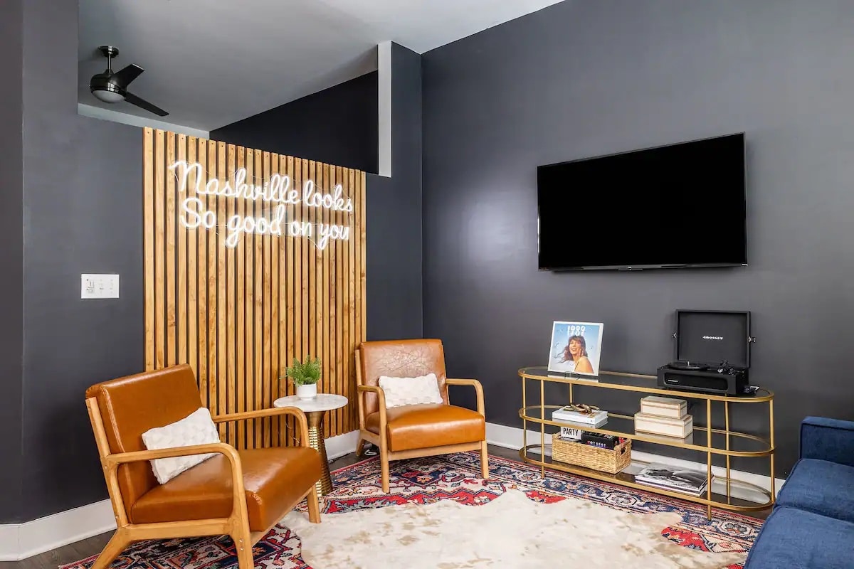 Ești gata să petreci în inima orașului Nashville? Boldul nostru 1BR negru și auriu se află la doar câțiva pași de Broadway, barurile Honky Tonk și Gulch! Înainte de joc cu jocuri, redă în flux preferatele tale pe două televizoare de 50"și vibrează cu Wi-Fi rapid. Mergi pe jos până la cele mai tari baruri, muzică live și restaurante. Perfect pentru un weekend sălbatic, o petrecere aniversară sau o escapadă a prietenilor. Trăiește, râzi și creează amintiri exact acolo unde este acțiunea! Numărul de înregistrare2022059164