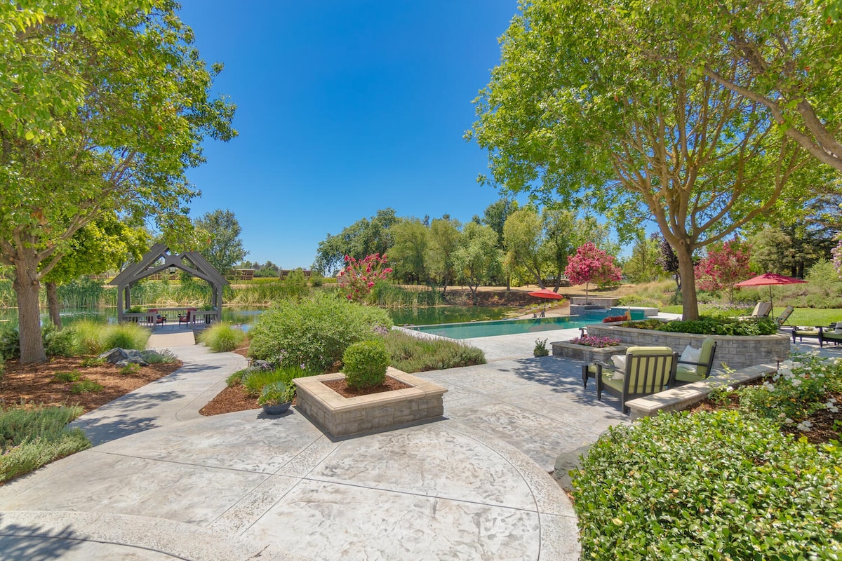 Wine Country Garden View Farmhouse with Fire Pit