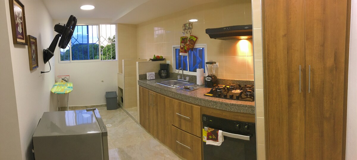 Apartament frumos în cartier liniștit, prietenos. Apartament cu aer condiționat la etajul al doilea, cu bucătărie completă, intrare privată și camere de securitate. Poate găzdui 4 persoane confortabil. Aproape de mijloacele de transport în comun și la câțiva pași de restaurante, cluburi de noapte și Estadio Metropolitano (Stadionul Roberto Melendez)
