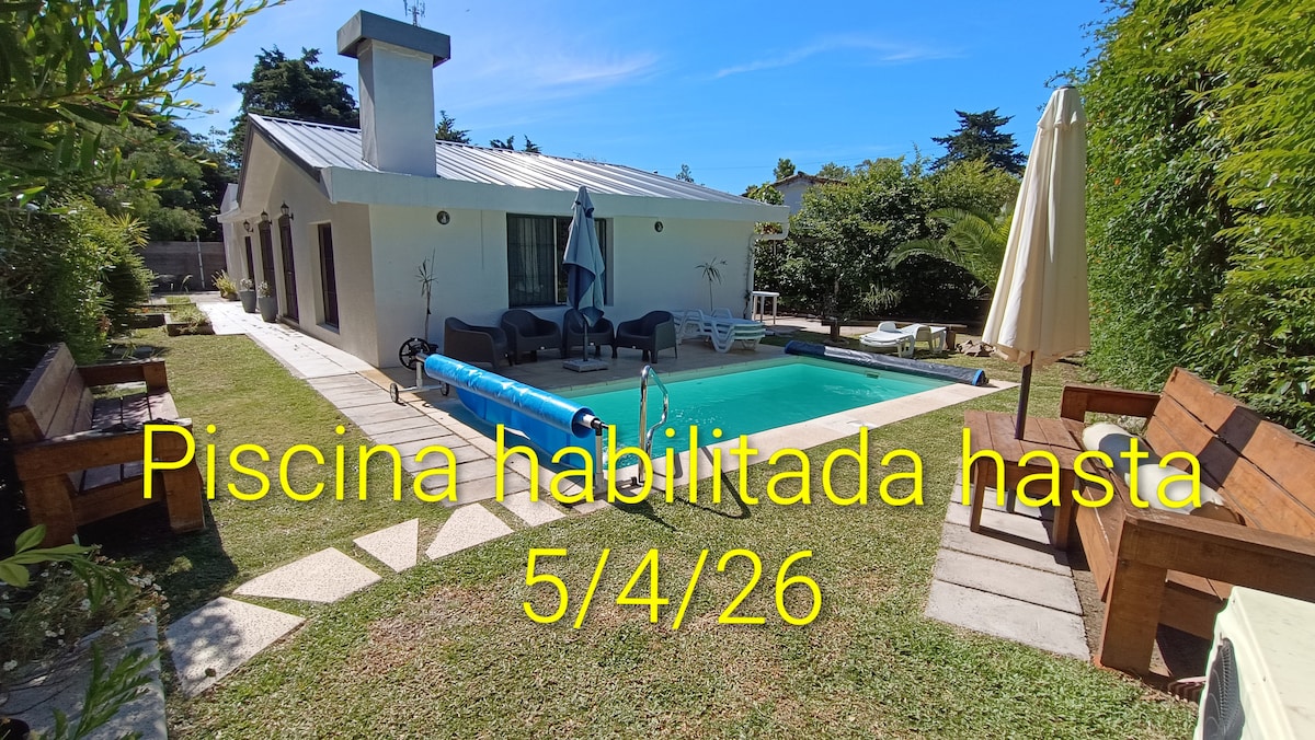 Cabaña en excelente ubicación a 200m de la playa, parada de ómnibus y almacén Dormitorio principal con cama matrimonial, aire acondicionado y baño en suite. 2do dormitorio con cama matrimonial y cuchetas Amplio living comedor con estufa a leña y aire acondicionado. Cocina completa integrada Parillero techado Piscina climatizada con deck (consultar por funcionamiento en invierno) Cancha de frontón. Ping-pong UTE se cobra por separado. Temporada alta (Dic a Feb) reserva mínima de 3 noches.