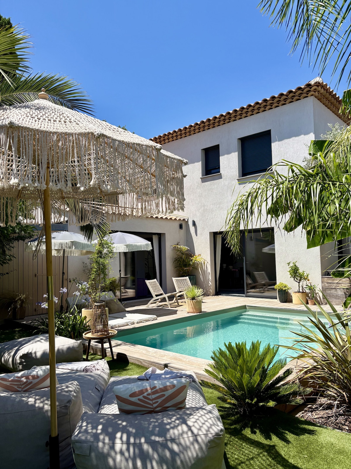 Petite maison atypique en impasse très calme plein pied et mezzanine Climatisation jardin ombragé/barbecue - coin repas parking devant maison 2 places PLAGES 3mn à pied la Verne (surveillee) 10 mn à pied Fabregas (restaurant) 10 mn voiture Sablettes (restaurants, bars, lunapark, marches, animations) Domaine de Fabregas 10 mn à pied (promenade en foret , producteur bio) Petits commerces 5 mn en voiture - supermarché à 10 minutes animaux acceptés OPTIONS menage et linge de maison