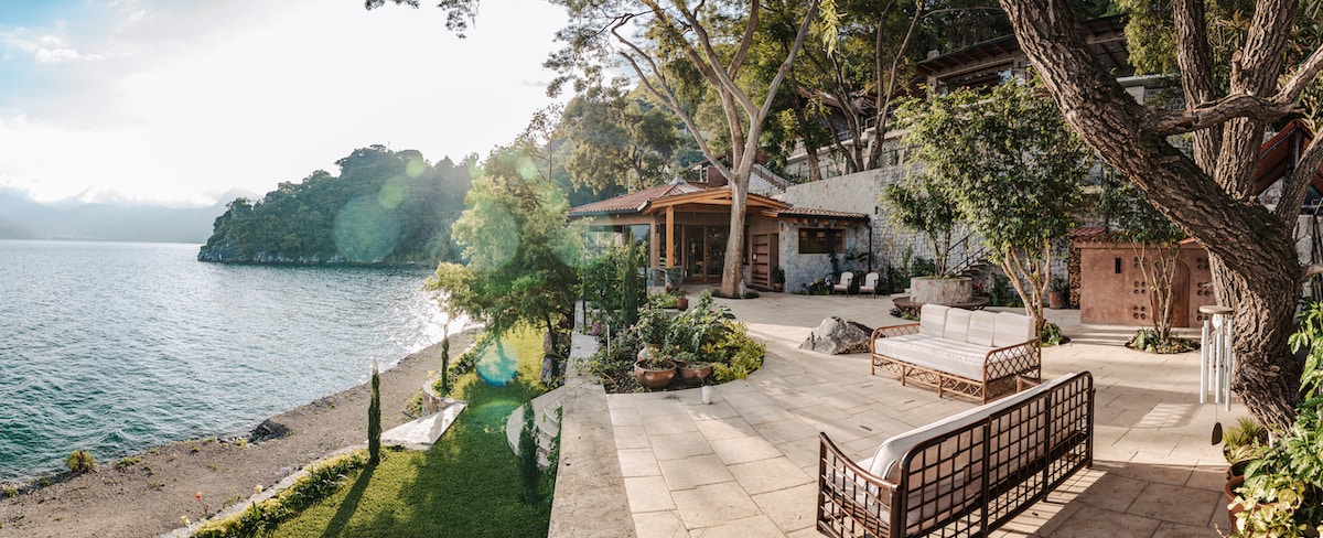 Inspirată de bijuteriile arhitecturale din Antigua, această casă pe malul lacului are o curte centrală mare, cu coloane tradiționale din lemn, fântână, sufragerie în aer liber și cameră de zi. Casa are două apartamente principale identice. Fiecare cu balcoane înfășurate. Alte două dormitoare au paturi queen-size. Casa se mândrește cu cele mai bune dotări moderne din ambele lumi, într-un cadru tradițional elegant, toate în frumusețea grădinilor și priveliști uluitoare ale lacului Atitlan.