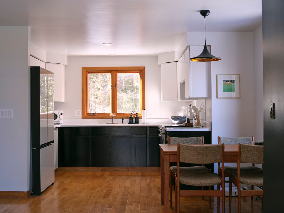 Evadează în clădirea noastră școlară istorică și renovată cu drag, situată pe o fermă regenerativă verificată de 250 de acri, unde priveliștile asupra munților Green Mountain se îmbină cu confortul modern. Relaxează-te în cada cu hidromasaj privată și în sauna butoi după ce explorezi traseele agricole, apoi adormi în sunetul blând al oilor care pasc pe pășunile de dedesubt. Acesta este Vermont în cea mai autentică formă - viața la fermă cu tot luxul. Încărcător EV de nivel 2, mașină de spălat/uscător în locuință și aer condiționat fără conducte pentru confort pe timpul verii.