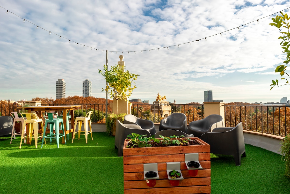 Comfortable apartment with good views, FOR FAMILIES WITH CHILDREN, in the center of Barcelona. The building has a large shared terrace where you can relax and disconnect after your city tours, with magnificent views of the Ciutadella Park and Barcelona.