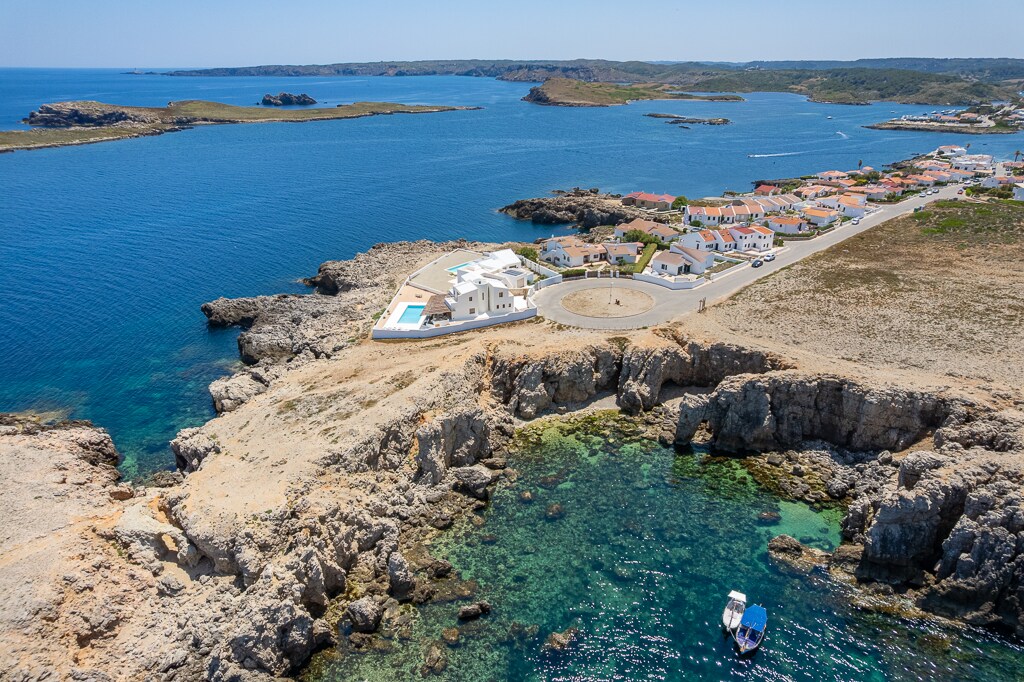 HOUSE with Infinity Pool over the sea. Incredible sea views at all times. Real 1st line right by the sea. Fully renovated (2025). A wonderful place for 6 to spend your holiday. 3 double rooms, 2 bathrooms. AC in every room. Free WIFI and Ethernet connection in every room. 5 min walk to the beach, Cala Binibèquer. BBQ in the terrace. Pool is 100% for private and exclusive use of house guests.