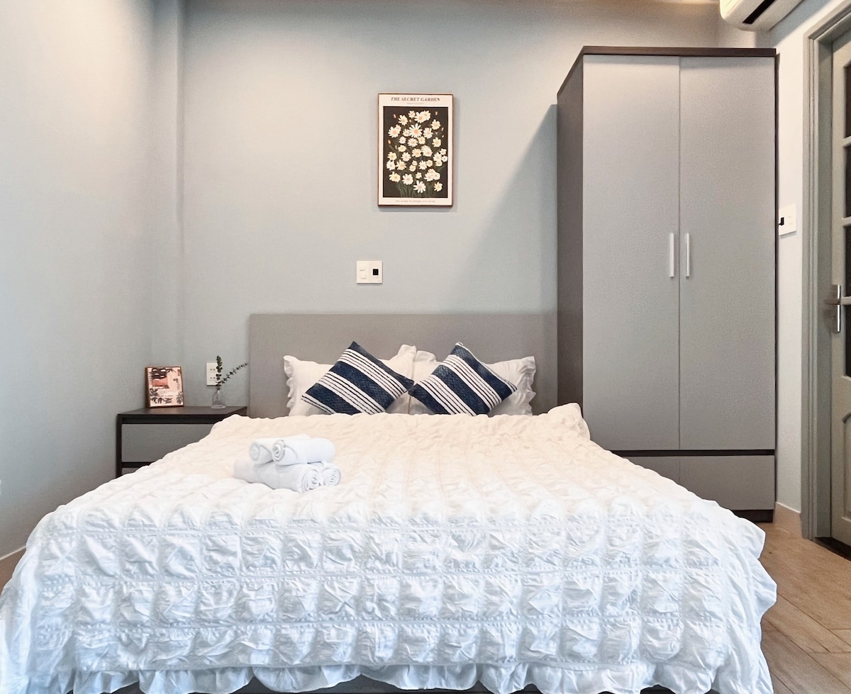 Bine ai venit în studioul nostru complet echipat, conceput pentru a te face să te simți ca acasă! Situat în inima orașului Da Nang, apartamentul nostru se află direct vizavi de plaja My Khe, la doar o scurtă plimbare de nisip și mare. La doar 5 minute de Podul Dragonului și de Piața de noapte, vei fi înconjurat de restaurante și cafenele excelente. Studioul include o bucătărie compactă cu dotări esențiale pentru mese simple. Rezervă acum și bucură-te de tot ce este mai bun în Da Nang!