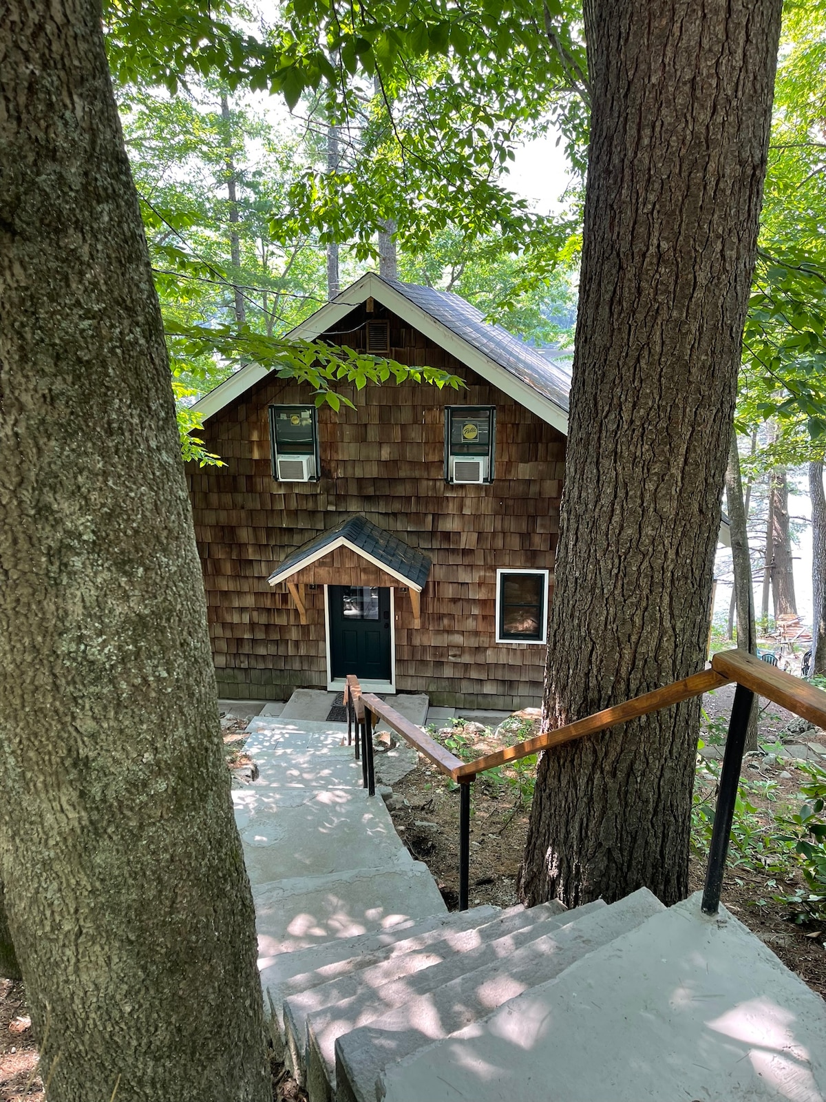 Charming lakeside cottage only 29' from the waterline, w/65' of private waterfront. The cottage is a 3-season, classic L.C. Andrews, log-sided Maine summer lake home. Cozy atmosphere and a wonderful enclosed porch with amazing waterfront views. Enjoy fishing off the dock, hiking, canoeing, campfire, and exploring surrounding areas. Air conditioning units will ensure your comfort on warm summer nights and high-speed internet will keep your devices connected. Furnishings are family mix.