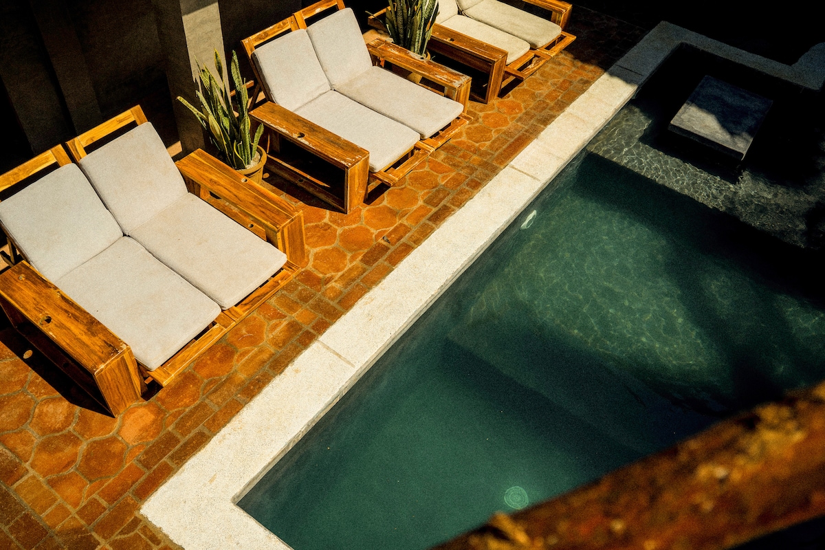 Hotelul nostru are un total de 7 camere în stil rustic și boem, la o scurtă plimbare de cea mai bună plajă cu nisip din orașul de surf, Playa El Zonte. Atmosfera este confortabilă, liniștită și relaxantă, cu toate facilitățile pentru o ședere plăcută. Restaurantul nostru pe două niveluri cu vedere la mare, unde te poți bucura de bucătăria noastră delicioasă, cum ar fi fructe de mare, cocktailuri/ceviches, pizza făcută într-un cuptor cu lemne și multe altele cu priveliști incredibile. Vei putea asista la apusuri de soare unice.