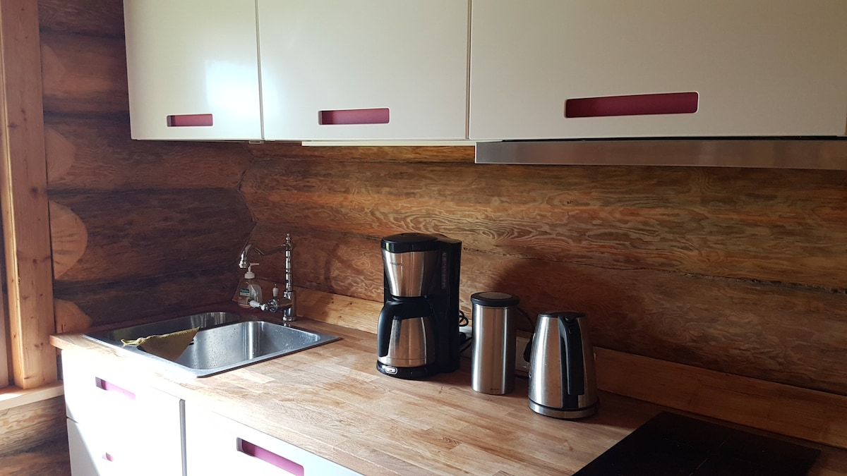 Relaxează-te în acest spațiu calm și elegant. Perfect pentru o vacanță liniștită în natură. Casă mică cu două etaje de 40m2 și o saună separată, cu tot ce ai nevoie pentru o escapadă scurtă sau lungă - bucătărie complet utilată, Wi-Fi, TV, spațiu de lucru mic, saună relaxantă și spații confortabile de relaxare.