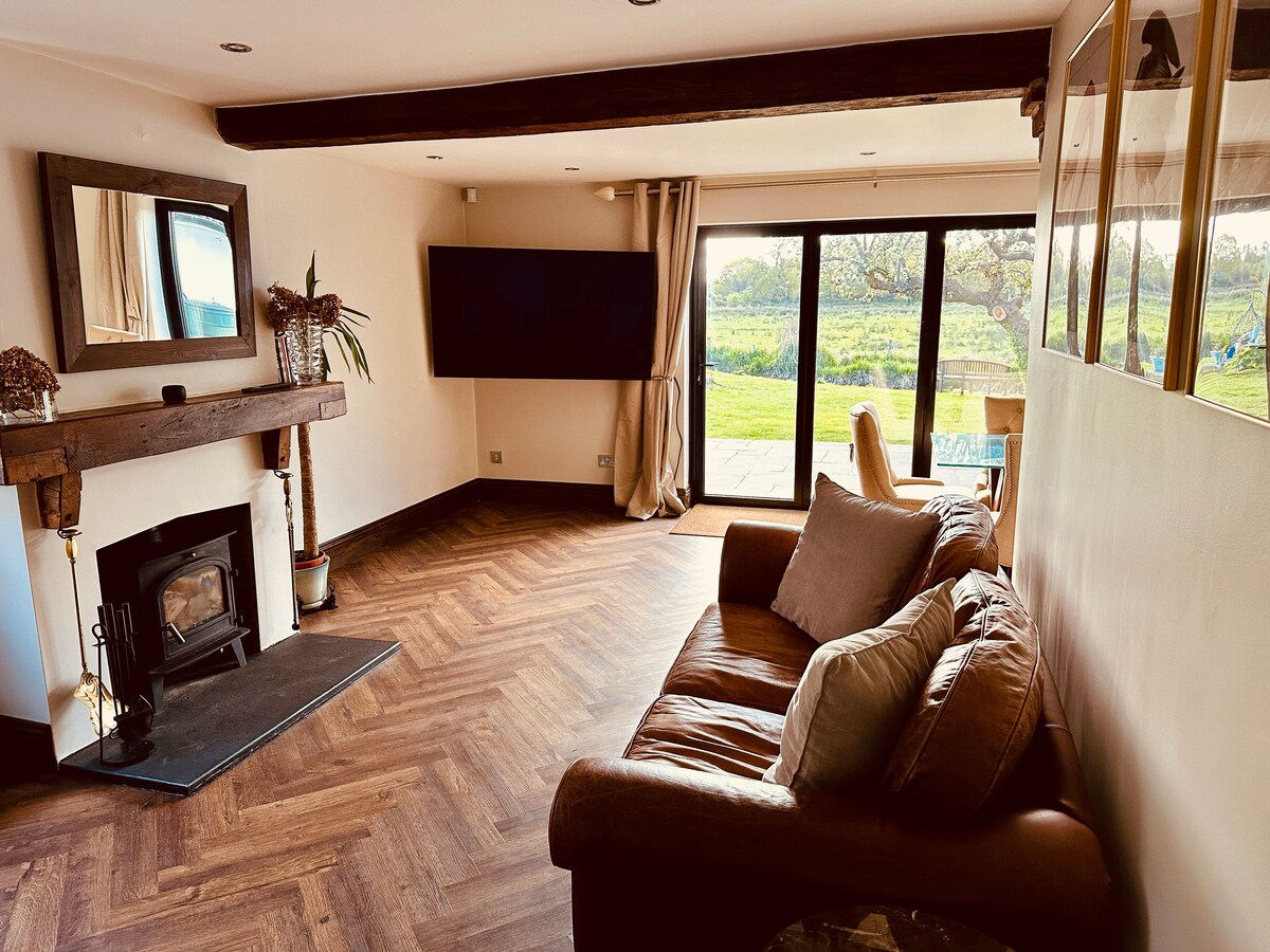 Un adult confortabil, numai luxos și privat, în minunata noastră exploatație mică. Un cadru frumos, cu o priveliște minunată. Perfect pentru o escapadă romantică cu dotări suplimentare unice, cum ar fi o bucătărie în aer liber complet încărcată, cadă cu hidromasaj și terasă privată pentru 6 persoane, arzător cu bușteni cu gaz, plus facilități complete de gătit și baie în interior. Hambarul este încălzit central cu gaz și are, de asemenea, uși duble duble, astfel încât să poți aduce exteriorul și să te bucuri de mediul rural într-un confort real de lux. De asemenea, există o mulțime de atingeri speciale!