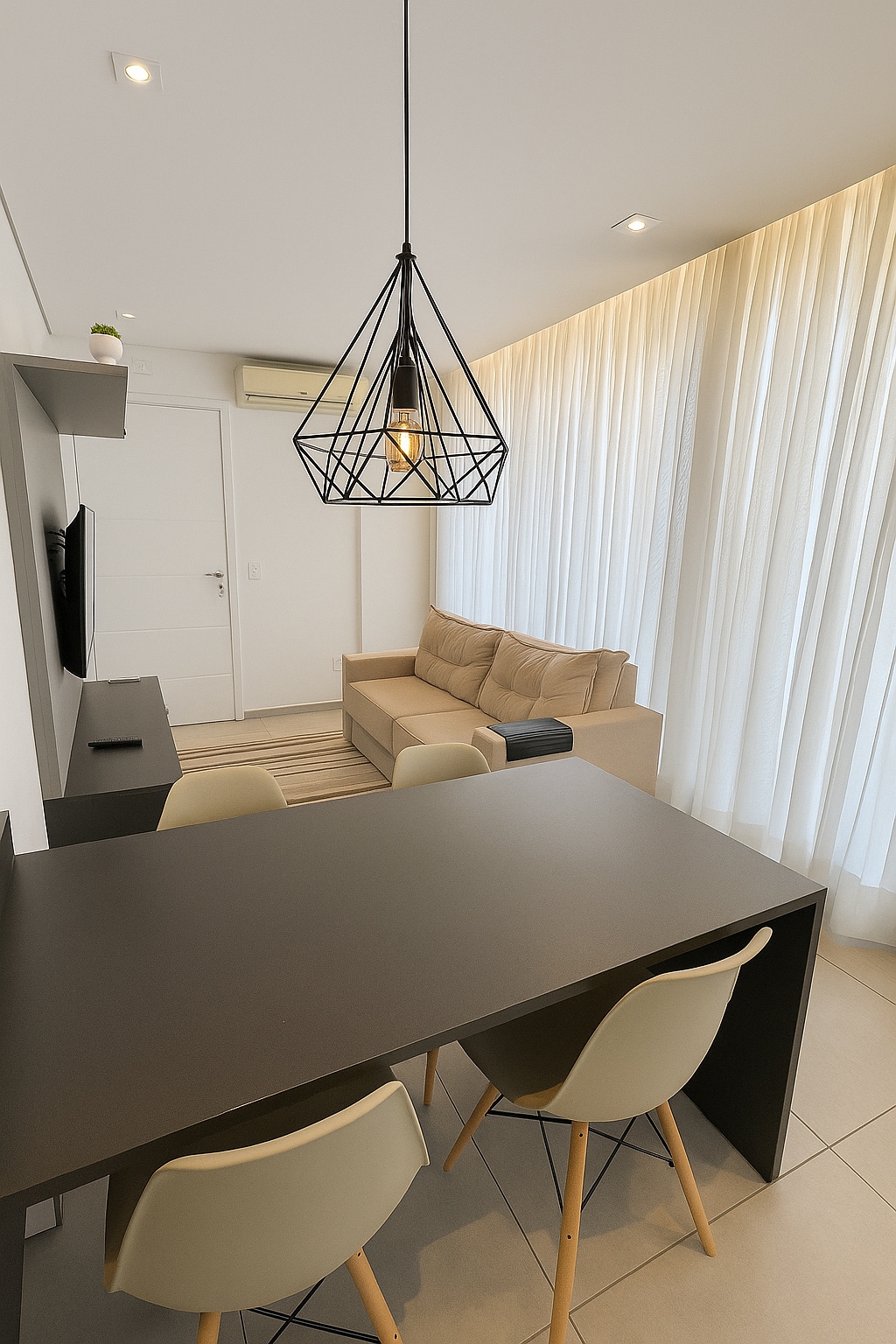 Este estúdio foi projetado para oferecer uma experiência única, unindo conforto, estilo e praticidade. A decoração moderna e cuidadosamente planejada cria um ambiente aconchegante, ideal para relaxar ou trabalhar com tranquilidade. Cada detalhe foi pensado para proporcionar bem-estar, desde a iluminação aconchegante até os móveis funcionais e elegantes. Perfeito para quem busca um espaço exclusivo, cheio de charme e personalidade Este lugar único tem um estilo próprio.