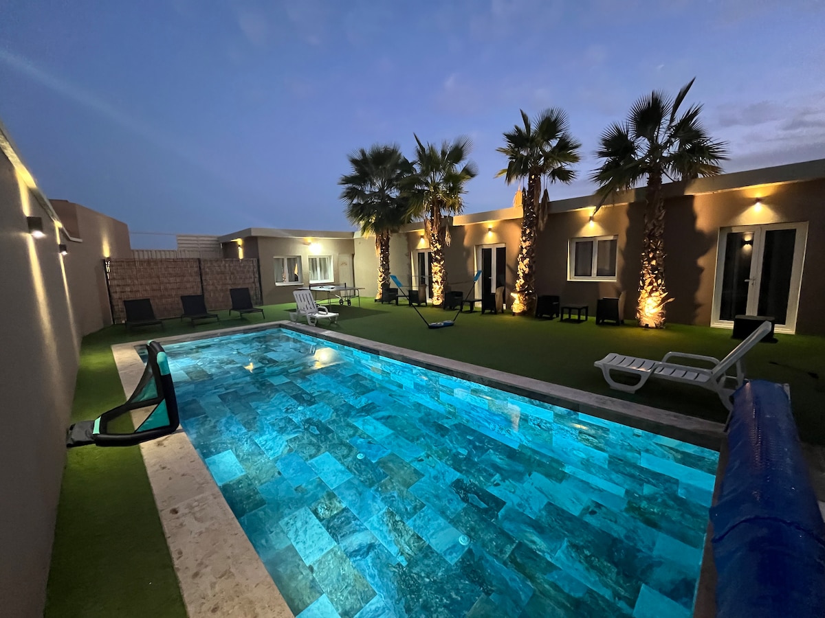 Vilă nouă la 4 km de Marrakech, la 700 de metri de drumul neasfaltat. La mai puțin de 15 minute de centru . Totul este în apropiere Toate facilitățile moderne. Piscină, încălzită . 100 giga FIBRĂ OPTICĂ. IPTV inteligent. Fotbal de masă, masă de ping-pong, tir cu arcul și badminton Plită disponibilă ca opțiuni, supermarketul MARJANE și Mac Donald la 5 minute distanță. 3 dormitoare frumoase cu aer condiționat Piscină încălzită gratuită